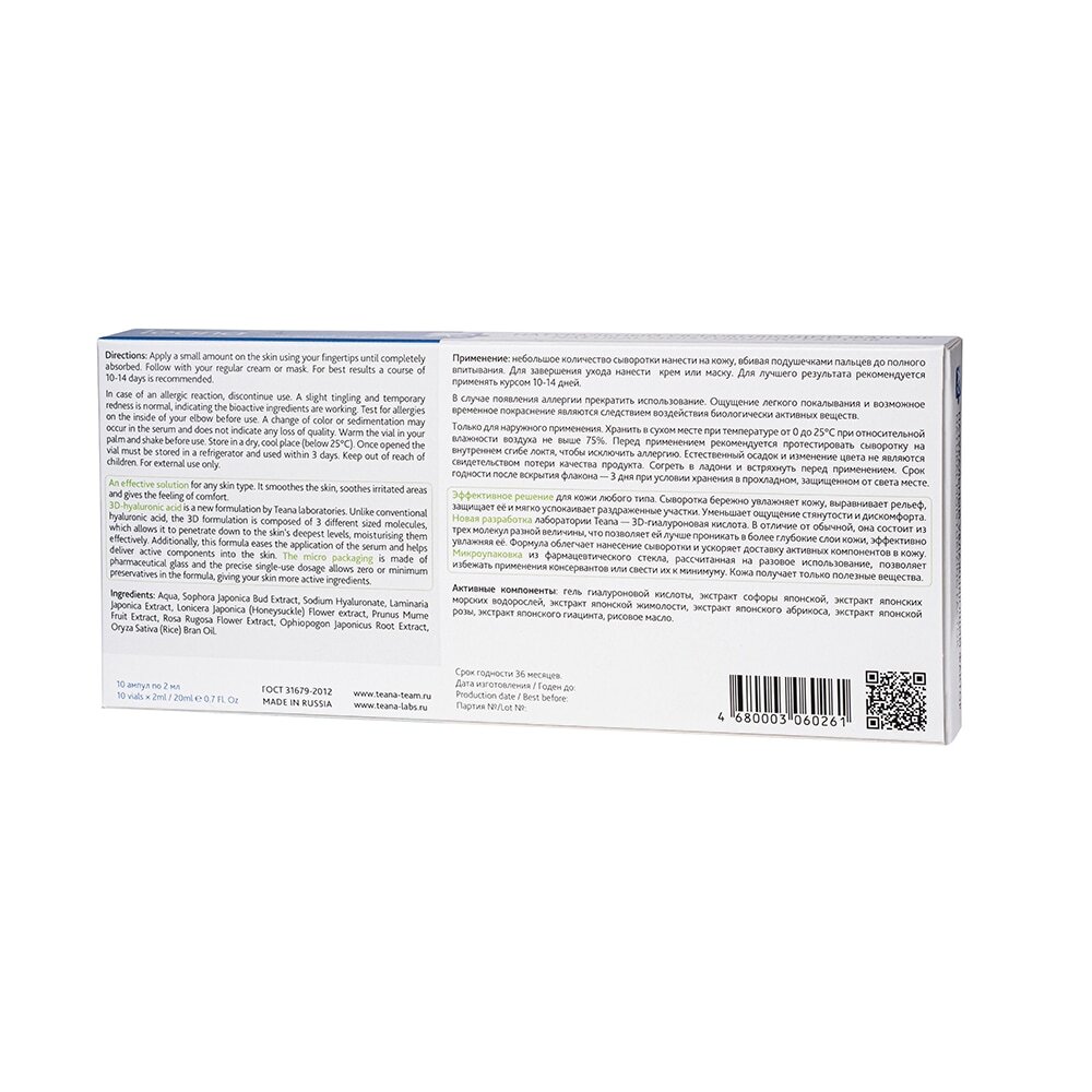 Гель гиалуроновой кислоты (hyaluronic acid gel), экстракт софоры японской (Sophora Japonica), экстракт японских морских водорослей (Laminaria Japonica), экстракт японской жимолости (Lonicera Japonica), экстракт японского абрикоса (Prunus Mume), экстракт японской розы (Rosa Rugosa), экстракт японского гиацинта (Ophiopogon Japonicus), рисовое масло (Oryza Sativa). Ingredients: Aqua, Sophora Japonica Bud Extract, Sodium Hyaluronate, Laminaria Japonica Extract, Lonicera Japonica (Honeysuckle) Flower Extract, Prunus Mume Fruit Extract, Rosa Rugosa Flower Extract, Ophiopogon Japonicus Root Extract, Ophiopogon Japonicus Root Extract, Oryza Sativa (Rice) Bran Oil.