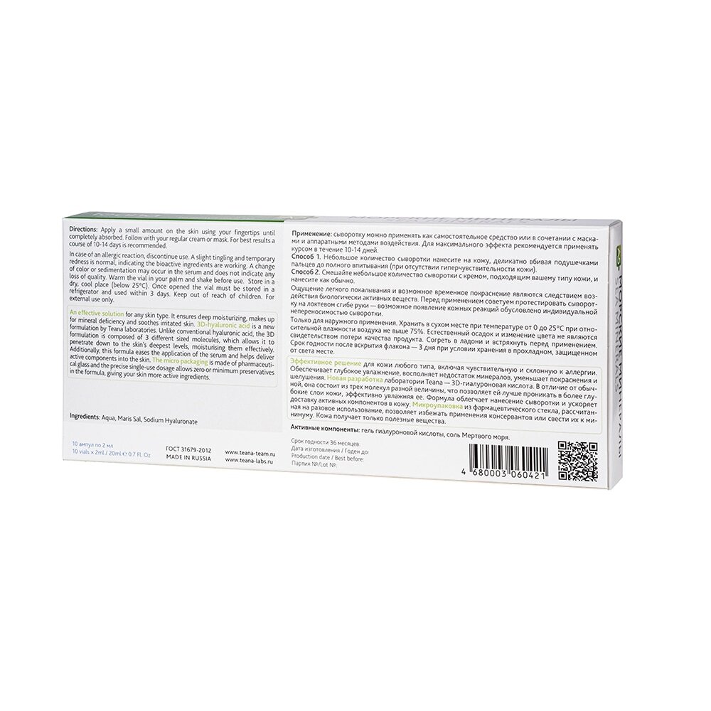 Гель гиалуроновой кислоты (hyaluronic acid gel), соль Мертвого моря (Maris sal). Ingredients: Aqua, Maris Sal, Sodium Hyaluronate.