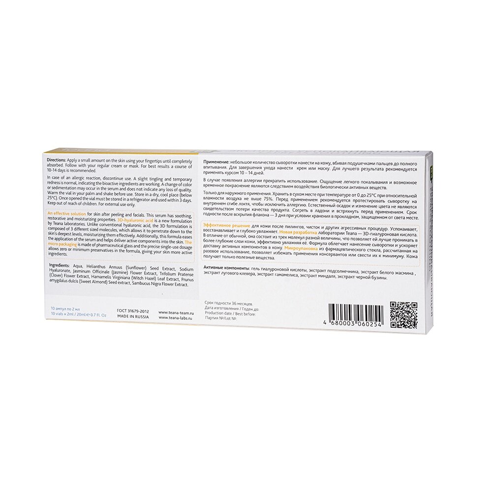 Специально разработанная 3D-система доставки гиалуроновой кислоты (3D-гиалуроновая кислота) разных фракций в глубинные слои кожи обеспечивает восполнение недостающих полезных элементов в клетках, благодаря чему кожа вновь становится мягкой и эластичной.