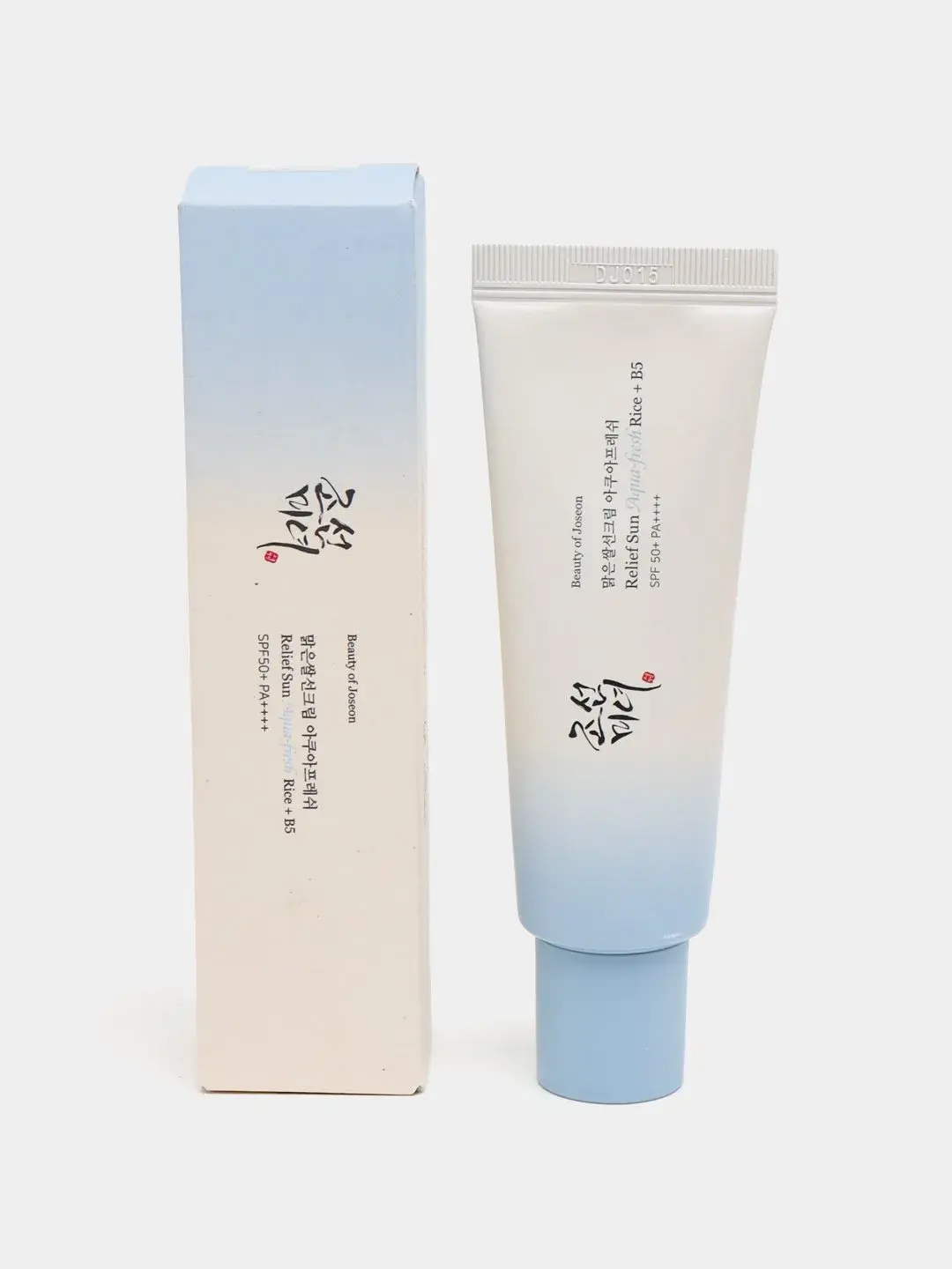 Солнцезащитный крем Beauty of Joseon Relief Sun Aqua-fresh Rice+B5 SPF50+ PA++++ имеет невесомую текстуру лосьона, которая быстро впитывается, не оставляет липкости и белых следов даже при нанесении в несколько слоёв. Комфортно ощущается на коже, увлажняет и смягчает.