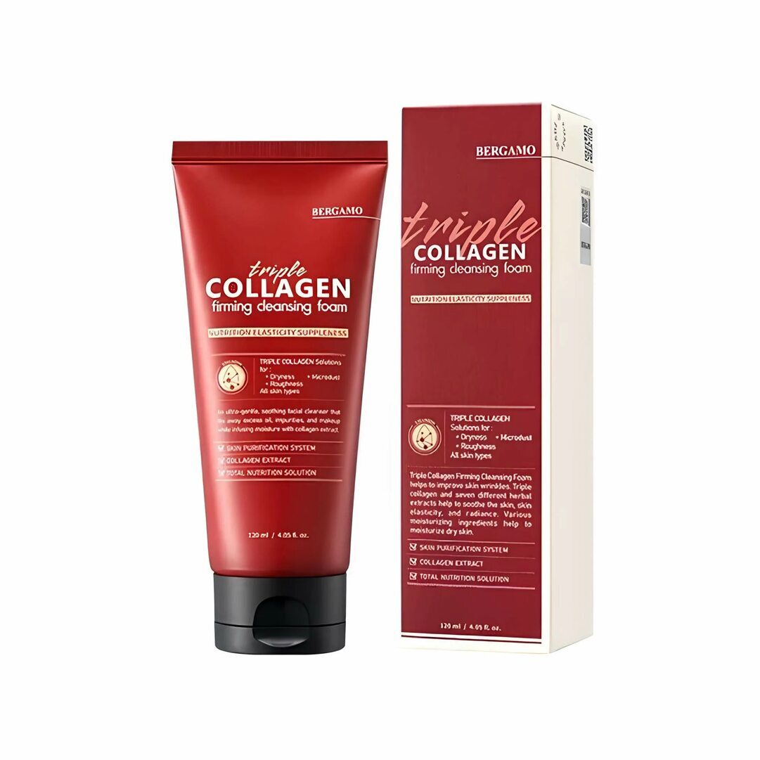 Bergamo Triple Collagen Firming Cleansing Foam – это пенка для умывания с тройным коллагеном содержит питательные вещества, способствующие регенерации и улучшению здоровья кожи. Пенка эффективно очищает кожу, удаляя пыль, грязь и бактерии глубоко в порах, но не расширяя их, что предотвращает возникновение угрей.