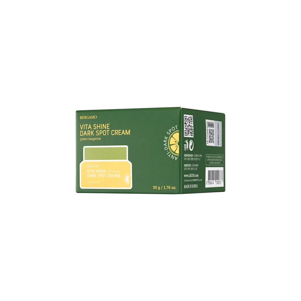 BERGAMO Vita Shine Dark Spot Cream — это эффективный крем, разработанный для борьбы с пигментными пятнами, веснушками и неровным тоном кожи. Формула обогащена экстрактом мандарина (65%), ниацинамидом (витамином B3), а также комплексом натуральных ингредиентов, которые помогают выровнять тон кожи, уменьшить видимость пигментации и придать лицу здоровое сияние.