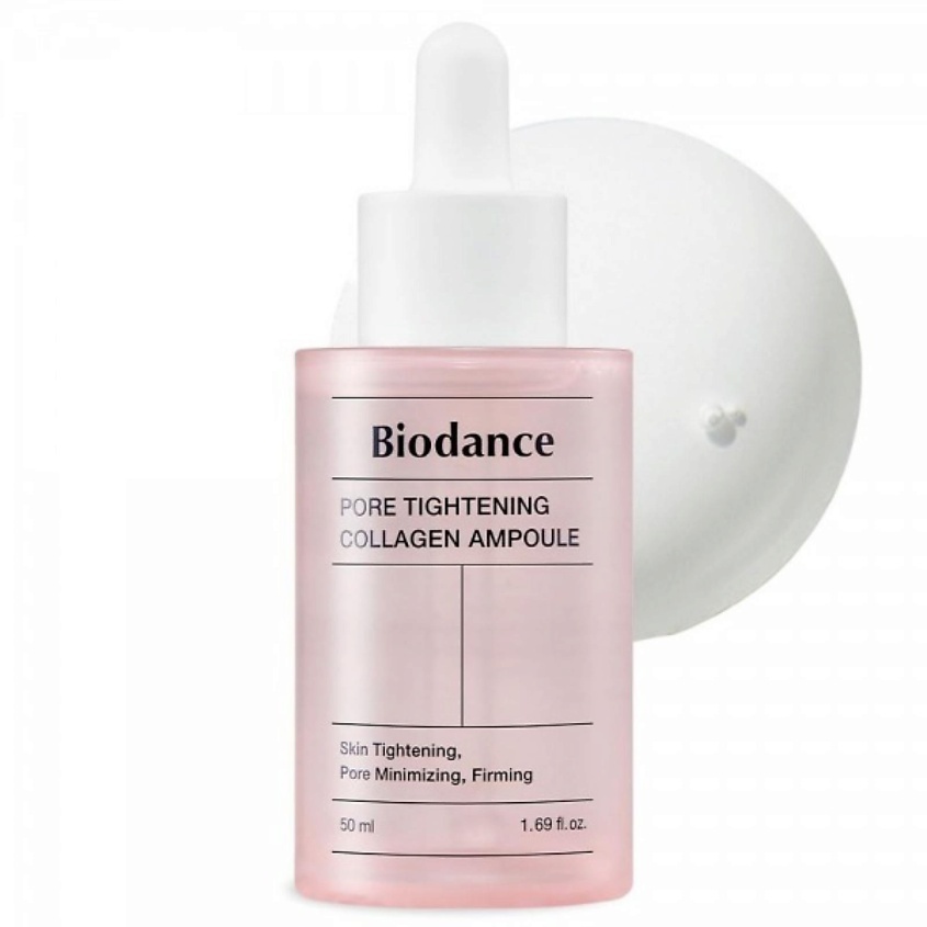 Ампульная сыворотка Biodance Pore Tightening Collagen Ampoule с коллагеном для сужения пор нормализует секрецию себума, способствует сужению пор, интенсивно насыщает влагой, избавляя от сухости и шелушений, успокаивает раздражение и красноту, замедляет ранее увядание эпидермиса.