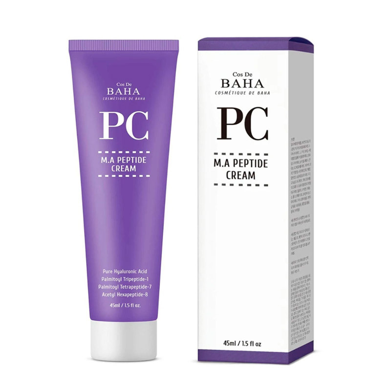 Омолаживающий крем для лица с пептидным комплексом M.A Peptide Cream южнокорейского бренда Cos De Baha содержит 61% органических компонентов, создан для ухода за кожей с признаками возрастных изменений. Нежная консистенция легко наносится, отлично впитывается полностью, обеспечивает комплексный уход. Средство глубоко питает и надолго увлажняет кожу, разглаживает и смягчает её, сокращает количество и глубину морщин, препятствует их образованию, повышает упругость и эластичность кожного покрова.