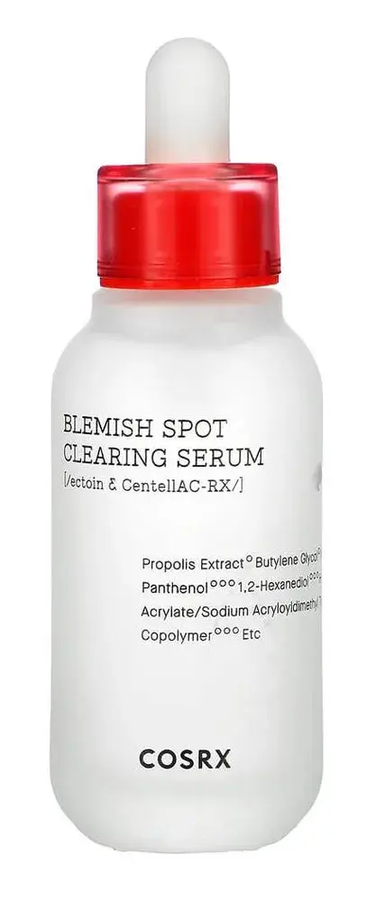Лечебная сыворотка COSRX AC Collection Blemish Spot Clearing Serum мягко осветляет и выравнивает общий тон, осветляет пятна постакне, ускоряет заживление воспалений, устраняет покраснения и успокаивает раздражённую кожу.