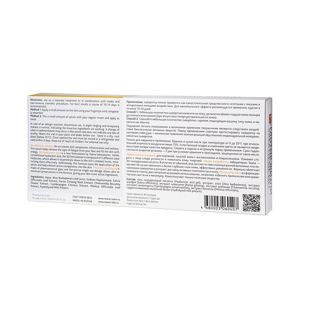 Применение: Наносить на предварительно очищенную кожу лица, включая область вокруг глаз, после тонизирования. Применять утром и вечером. Каждая ампула рассчитана на 2-6 применения.