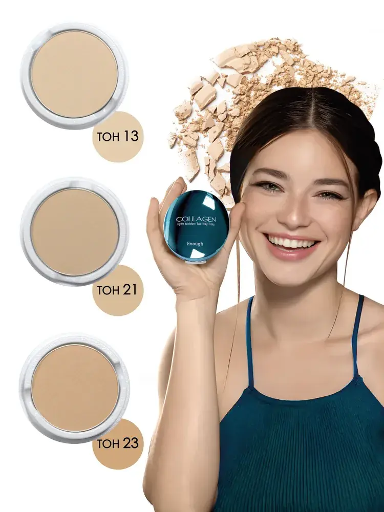 Легкая пудра Enough Collagen Two Way Cake мягко покрывает кожу, делает менее заметными несовершенства кожи, не создавая при этом эффекта маски, не утяжеляет кожу, не забивает поры.