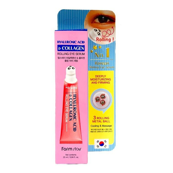 Farmstay Hyaluronic Acid & Collagen Rolling Eye Serum - инновационная сыворотка для глаз, специально разработанная для оживления и увлажнения нежной области вокруг глаз. Используя шариковый аппликатор, продукт обеспечивает легкое и освежающее нанесение, стимулируя кровообращение и уменьшая признаки усталости. Формула, обогащенная гиалуроновой кислотой и коллагеном, эффективно предотвращает появление морщин и темных кругов, делая кожу вокруг глаз свежей и отдохнувшей.