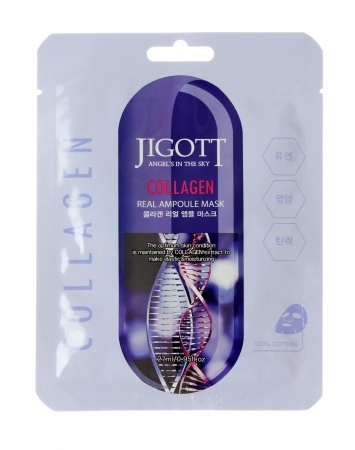 Jigott Real Ampoule Mask Collagen — это одноразовая увлажняющая маска с коллагеном. Она эффективно борется с проблемами кожи, снимает напряжение и усталость, насыщает клетки влагой, устраняет отёки и заряжает ткани энергией.