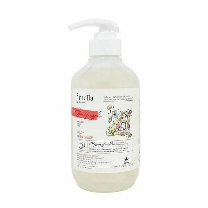 Деликатный гель для душа с нейтральным уровнем pH- 5,5 Jmella In France Disney Spring Apple Body Wash бережно очищает кожу и обладает пролонгированным увлажняющим действием. Содержит 30 растительных экстрактов и комплекс из 6 видов масел, предотвращает появление сухости и шелушений, питает и ухаживает за кожей. Содержит натуральные очищающие вещества и обладает тонким ароматом бергамота, яблока и мускуса. Гель протестирован дерматологами и подходит для всех типов кожи, включая чувствительную. Основные действующие компоненты: Экстракт Центеллы азиатской успокаивает, снимает зуд, предотвращает сухость и шелушение, ускоряет процессы регенерации клеток и устраняет воспаление Аллантоин - успокаивает и смягчает кожу, помогает ускорить процесс заживления. Комплекс карбоновых кислот (Лимонная, Лауриновая, Стеариновая) деликатно отшелушивает и дарит антиоксидантную защиту Пантенол обладает широким спектром положительного воздействия на кожу- восстановление тканей, разглаживание кожи, улучшение метаболических процессов в эпидермальном слое, устранение стянутости и шелушения, улучшение тургора кожного покрова, устранение отеков. Снимает покраснения и раздражения, возвращает коже здоровый оттенок. Экстракт зеленого чая нормализует состояние кожи за счет ускорения обменных процессов, предотвращает появление отеков и очищает поры, препятствует преждевременному старению Комплекс масел (Кокоса, Олива, Аргана, Авокадо, Камелия и Подсолнечник) выравнивает рельеф и тургор кожи, смягчает, питает, дарит гладкость и ухоженный вид Способ применения: нанесите необходимое количество средства на влажную кожу, распределите по телу, смойте теплой водой. Состав: Purified Water, Sodium Laureth Sulfate, Cocamidopropyl Betaine, Sodium Chloride, Fragrance (1.1%), Glycerin, Guar Hydroxypropyltrimonium Chloride, Allantoin, Citric Acid, Amodimethicone, Lauric Acid, Disodium EDTA, C12-14 Sec-Pares-7, Palmitic Acid, Panthenol, Stearic Acid, Butylene Glycol, Propylene Glycol, Wild Strawberry Leaf Extract, Myristic Acid, Arachidonic Acid, Dipropylene Glycol, Birch Sap Edelweiss Extract, Medicinal Wheat Extract, Centella Asiatica Extract, Kelp extract, Green tea extract, Proline, Phenylalanine, Threonine, Tyrosine, Arginine, Alanine, Isoleucine, Aspartic acid, Cysteine, Serine, Valine, Methionine, Leucine, Lysine, Glutamic acid, Histidine, Glycine, PhenoxyEthanol, Sodium benzoate, 1,2-hexanediol, Hexyl Cinnamal, Limonene, Linalool.(состав может быть не верный, на оригинальном сайте состава нет)
