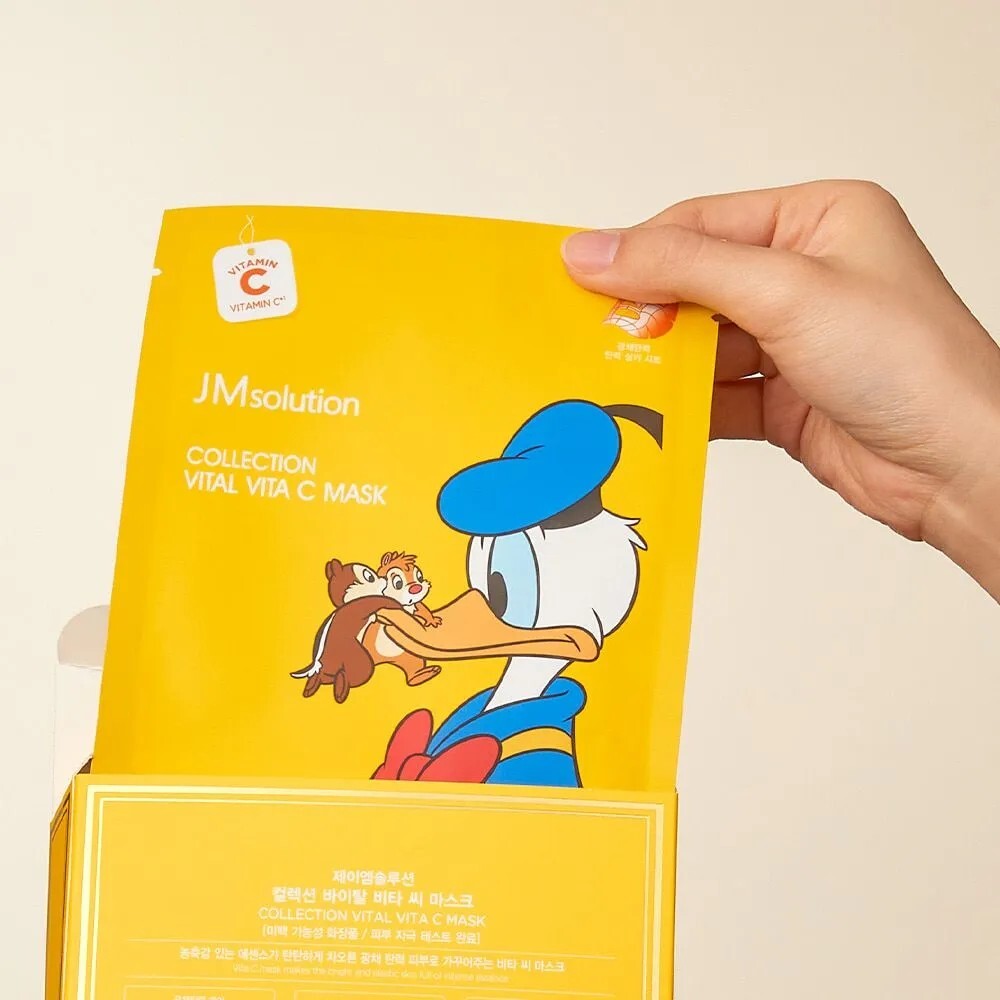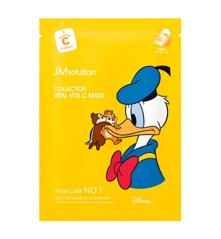 Тканевая маска JMsolution Disney Collection Vital Vita C Mask выравнивает тон, устраняет тусклость и следы усталости, придаёт естественное сияние и отлично увлажняет кожу. Формула содержит высокую концентрацию гидролата лимона (20,380 ppm), богатый лимонной кислотой и витамином С, который успокаивает, улучшает общий тон и оказывает антиоксидантный эффект, защищая клетки от свободных радикалов и тем самым продлевая молодость кожи.