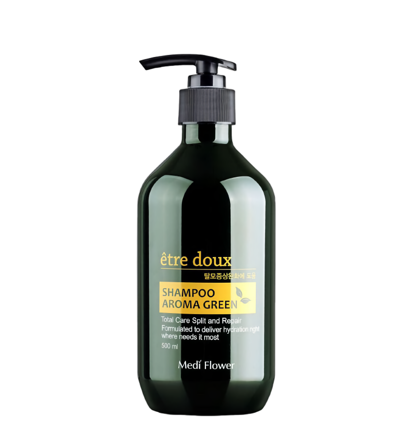 Шампунь Medi Flower Etre Doux Hair Shampoo Aroma Green предназначен для волос, склонных к выпадению. Средство помогает предотвратить потерю волос, снижая температуру кожи головы.
