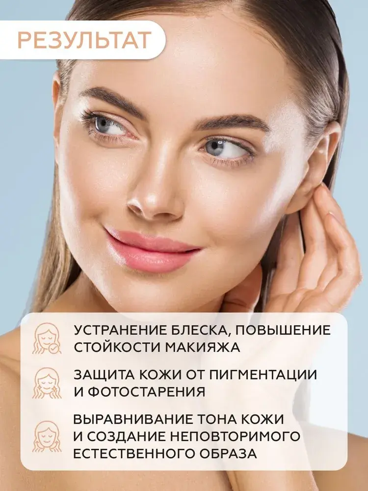 Обеспечивает дополнительную защиту от солнца. Содержит диоксид титана — гипоаллергенный физический УФ-фильтр, отражающий солнечные лучи, который также матирует и оказывает тонирующее действие.