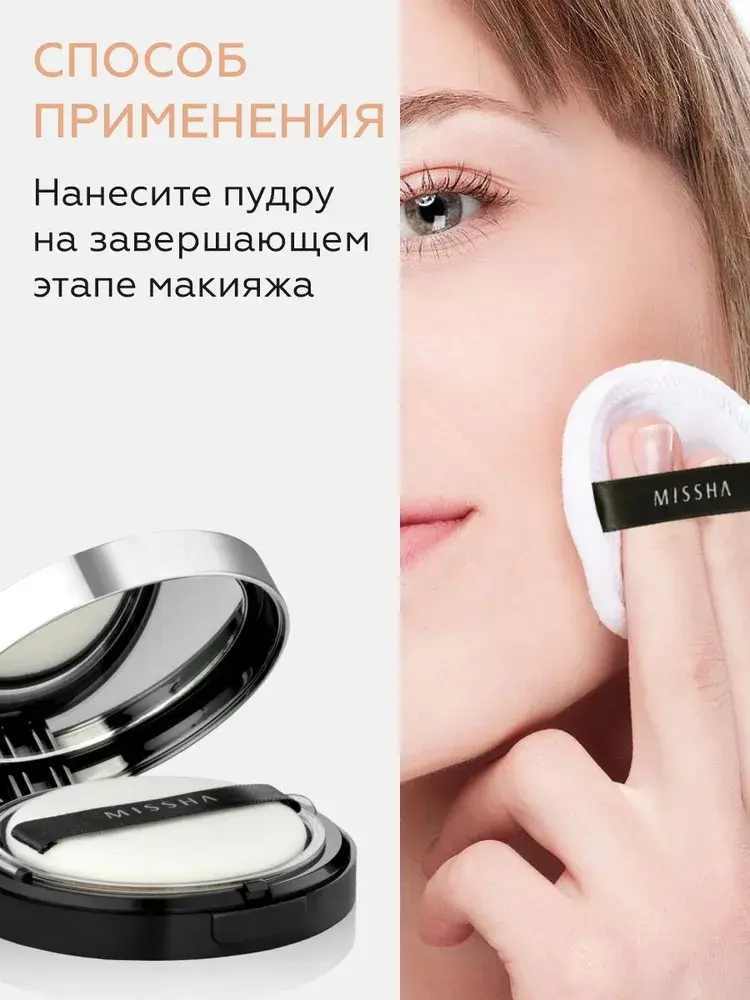 Способ применения: нанесите пудру на лицо тонким слоем с помощью спонжа.