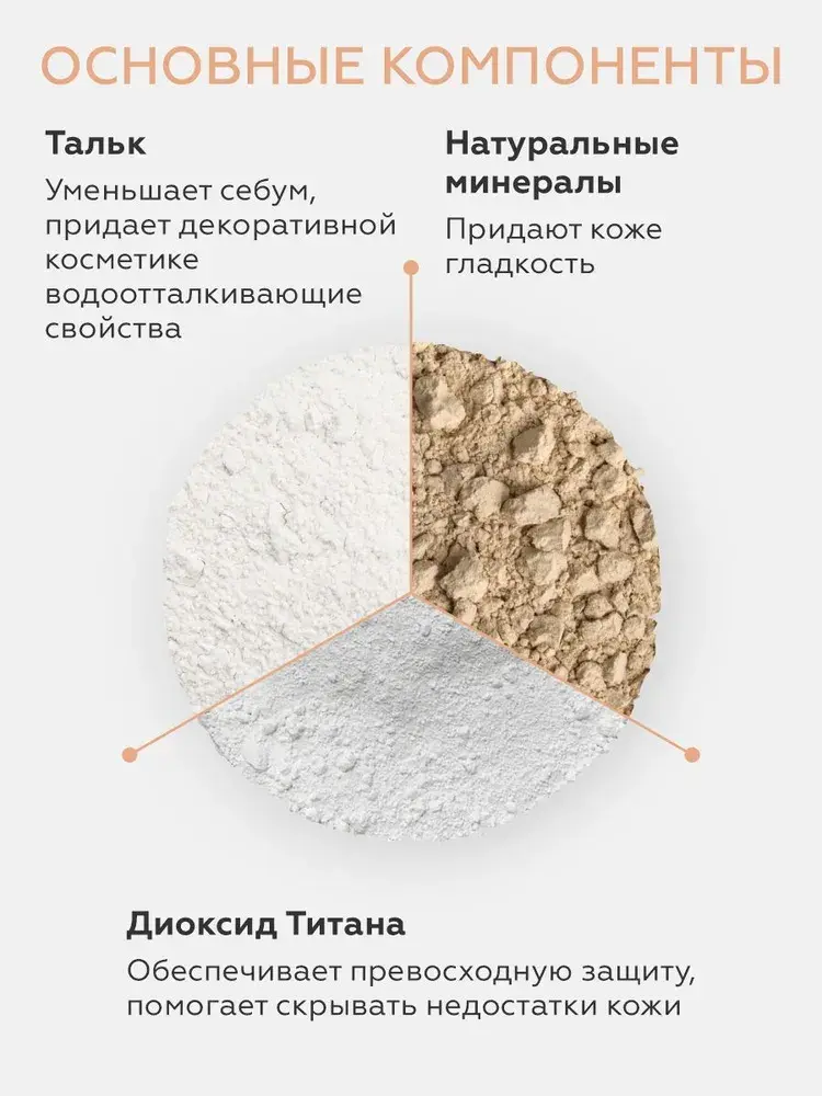 - Нитрид бора рассеивает свет, создавая эффект soft focus, визуально сглаживает неровности и уменьшает видимость пор и морщин, сохраняет матовый финиш.