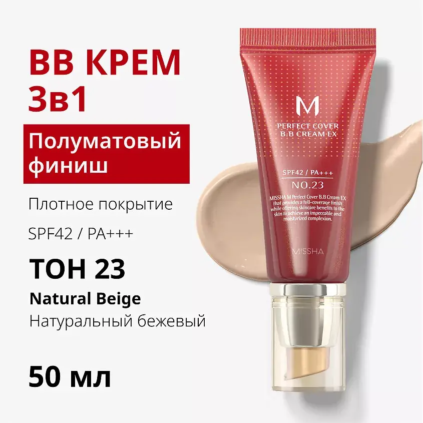 BB-крем MISSHA M Perfect Cover создаёт невесомое матовое покрытие без «эффекта маски». Подстраивается под Ваш естественный тон кожи, скрывая несовершенства и заметно улучшая цвет лица. Обеспечивает стойкое покрытие без жирного блеска до 30 часов. Не меняет оттенок в течение дня, не сереет, не темнеет, не скатывается. Благодаря мягкой кремовой текстуре BB крем MISSHA М Perfect Cover легко и быстро наносится, равномерно растушёвывается. Идеально перекрывает тёмные круги под глазами, маскирует покраснения и заметно осветляет пигментные пятна.