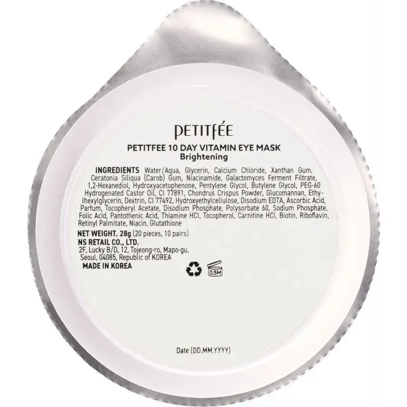Основу патчей 10 Day vitamin eye mask brightening составляет гидрогель – полимер, который впитывает огромное количество влаги и отдает её по мере необходимости. Таким образом, гидрогелевые патчи интенсивно увлажняют кожу, устраняют чувство стянутости, заполняют сухие кожные заломы и морщинки, делая кожу гладкой и мягкой.