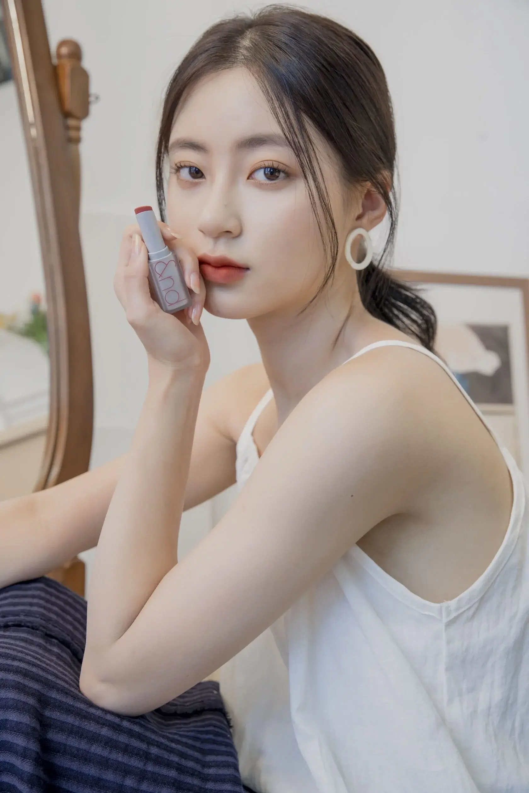 1. Мягко нанесите кончиком с внутренней стороны губ.