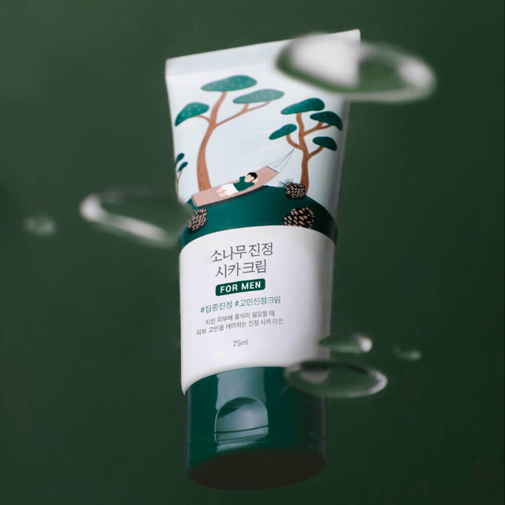 Крем Round Lab For Men Pine Calming Cica Cream увлажняет мужскую кожу, восстанавливает после бритья, препятствует появлению акне и жирного блеска.