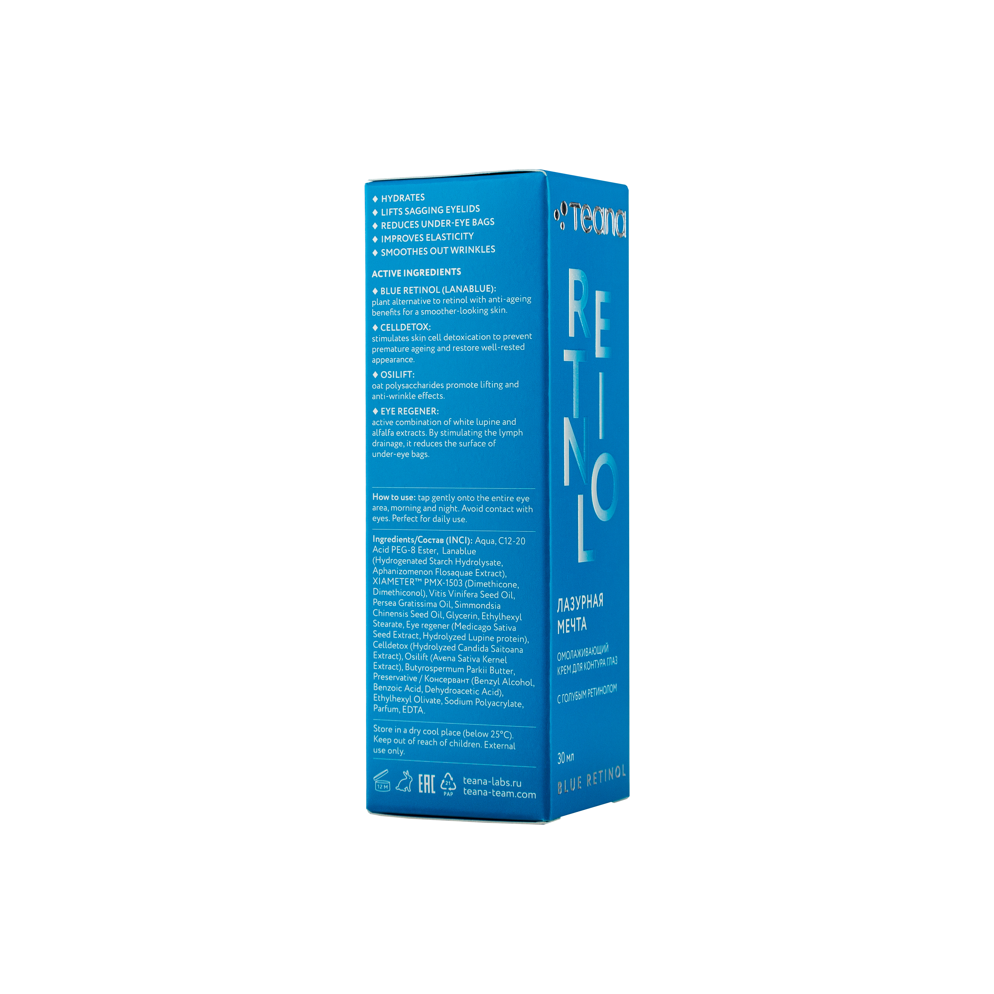 Aqua, C12-20 Acid PEG-8 Ester, Lanablue (Hydrogenated Starch Hydrolysate, Aphanizomenon Flosaquae Extract), XIAMETER™ PMX-1503 (Dimethicone, Dimethiconol), Vitis Vinifera Seed Oil, Persea Gratissima Oil, Simmondsia Chinensis Seed Oil, Glycerin, Ethylhexyl Stearate, Eye regener (Medicago Sativa Seed Extract, Hydrolyzed Lupine protein), Celldetox (Hydrolyzed Candida Saitoana Extract), Osilift (Avena Sativa Kernel Extract), Butyrospermum Parkii Butter, Preservative / Консервант (Benzyl Alcohol, Benzoic Acid, Dehydroacetic Acid), Ethylhexyl Olivate, Sodium Polyacrylate, Parfum, EDTA.